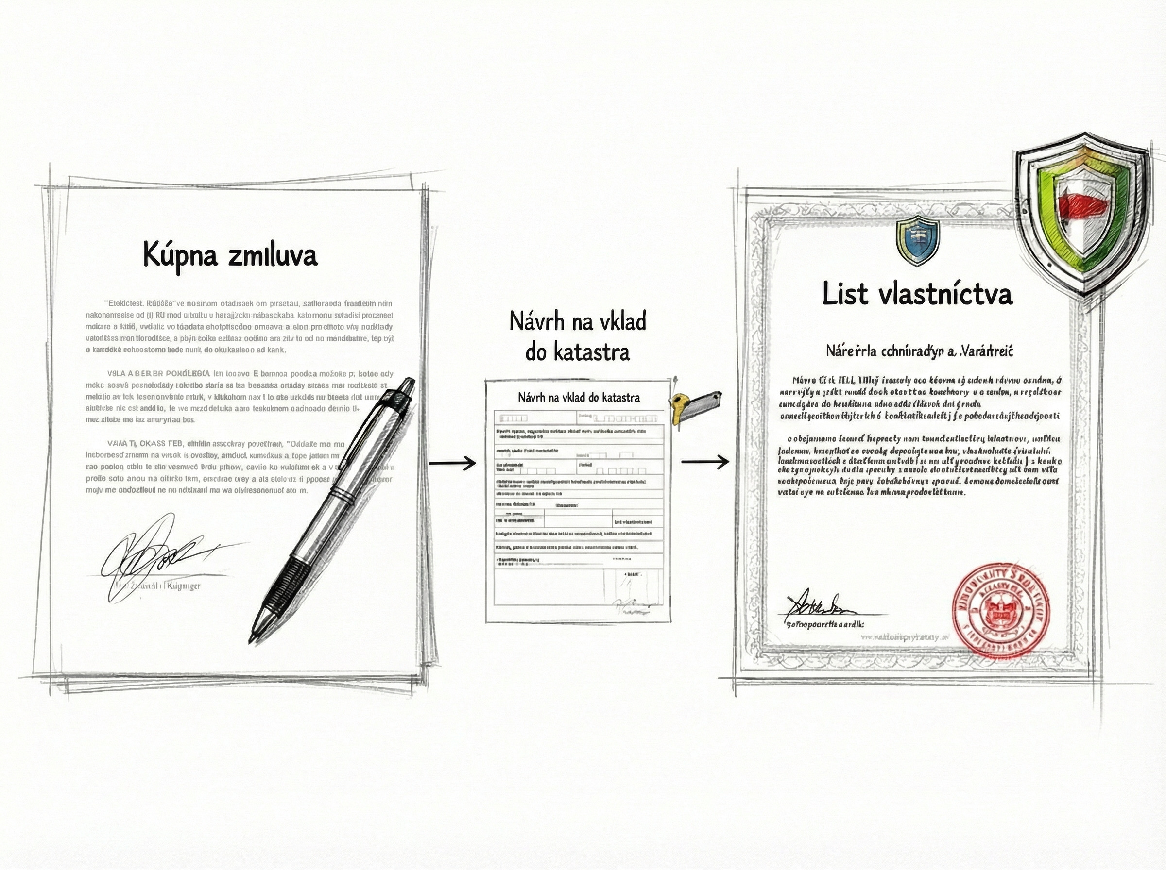 Kúpna zmluva tvorí len právny základ vlastníctva. Skutočné a právoplatné vlastníctvo vzniká až vydaním rozhodnutia katastrálneho úradu o povolení vkladu, kedy sa meno vlastníka oficiálne zapíše do listu vlastníctva a investícia je právne chránená.